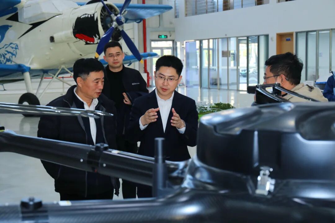 作为苏州市首批低空经济先导产业园,花桥低空经济产业园已引进32个低空经济产业项目,集聚专业人才近500名。王超来到花桥低空经济产业园,走访了低空经济龙头企业——时代飞鹏科技有限公司,听取了低空经济产业集聚、企业培育及人才队伍建设方面的情况介绍。王超对时代飞鹏在无人机系统及低空经济关键装备领域取得的创新成果印象深刻,他说,最近企业好消息不断,“射手座”和“金牛座”分别在中东地区和川藏高原首飞成功,彰显了企业的硬核实力,希望时代飞鹏紧紧抓住低空经济这个新兴产业发展机遇,充分发挥链主企业优势,带动更多上下游企业来花,提升花桥在先进无人运输机领域的产业集聚度和辨识度。