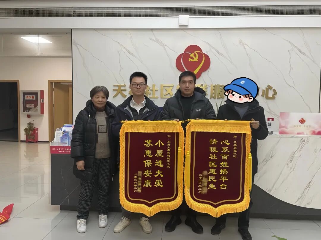 近日,花桥天福社区居民吴先生的子女专程来到社区党群服务中心,将印有“心系百姓搭平台,情暖社区惠民生”的锦旗送到工作人员手中,致谢社区打造健康小屋、精准链接资源,助力其顺利完成医疗保险理赔事宜。