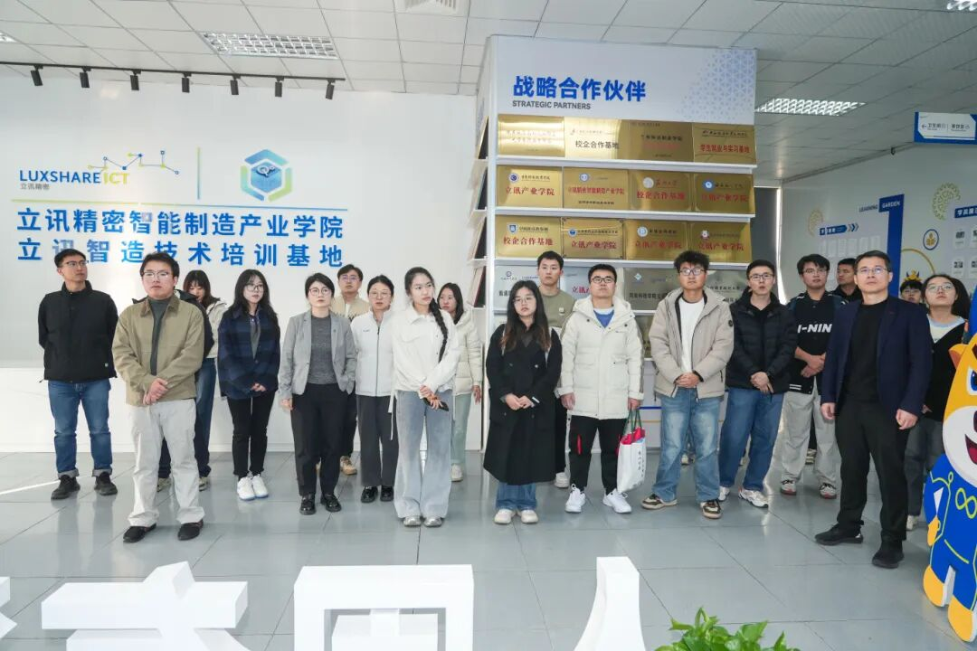在立讯精密工业股份有限公司,大家参观了立讯精密智能制造产业学院,通过与相关负责人的面对面交流,进一步掌握了目前产业所需的人才技能要求。