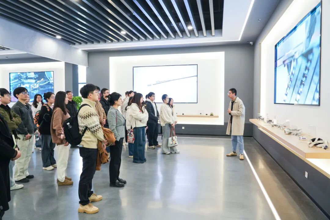 在昆山丘钛微电子科技股份有限公司,同学们观摩了高端摄像头模组研发生产线,了解到企业在智能制造、机器视觉等领域的创新成果,并与HR就人才需求与职业成长路径展开深入交流。