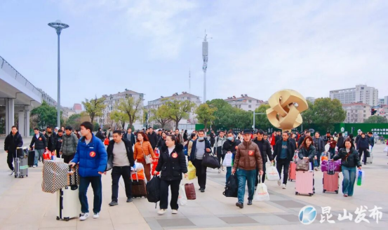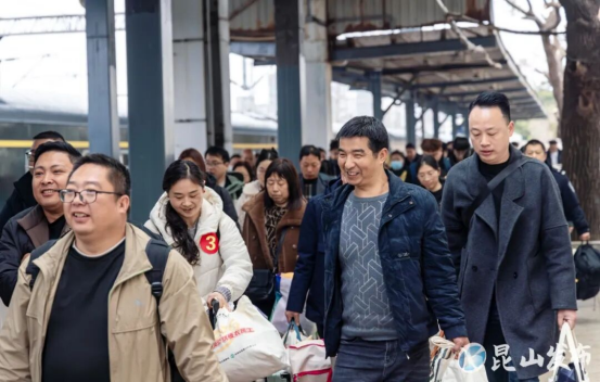 2月25日7点28分,随着一声鸣笛,一辆“驶向春天的列车”——K852次列车缓缓驶入昆山站,近300名来自河南叶县的工友带着新年的喜气和对未来的期许踏上昆山这片奋斗的热土,开启了新一年的征程。