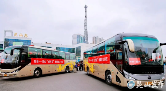 而在不远处的昆山站北广场,停靠着“点对点”专车,将直接从车站搭载工友们“无缝转接”前往所在企业。