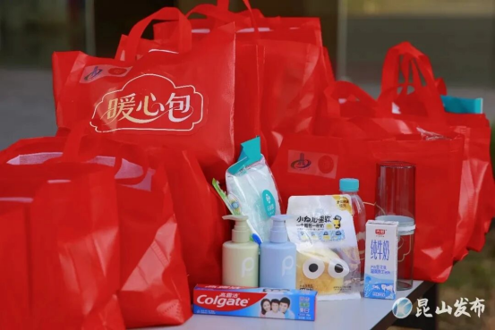 近300名叶县务工人员下车后在车站广场集合,昆山人社部门工作人员和志愿者们拉着横幅热情相迎,并亲手为远道而来的工友们送上一份份开工大礼包。