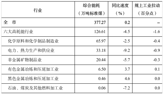 2025年,全市六大高耗能行业合计耗能126.61万吨标准煤,同比下降4.5%,降幅高于全市平均水平4.7个百分点;占规上工业能耗的比重为33.6%,较去年同期下降1.6个百分点。其中,化学原料和化学制品制造业为用能占比最大行业,受宝盐汽轮机检修升级影响,能耗同比下降2.5%;受统调电厂江苏华电的发电量下降影响,电力、热力生产和供应业能耗同比下降9.2%;受台嘉玻璃淘汰落后产线影响,非金属矿物制品业能耗同比下降5.7%,此三个行业合计拉动规上工业能耗下降1.6个百分点。