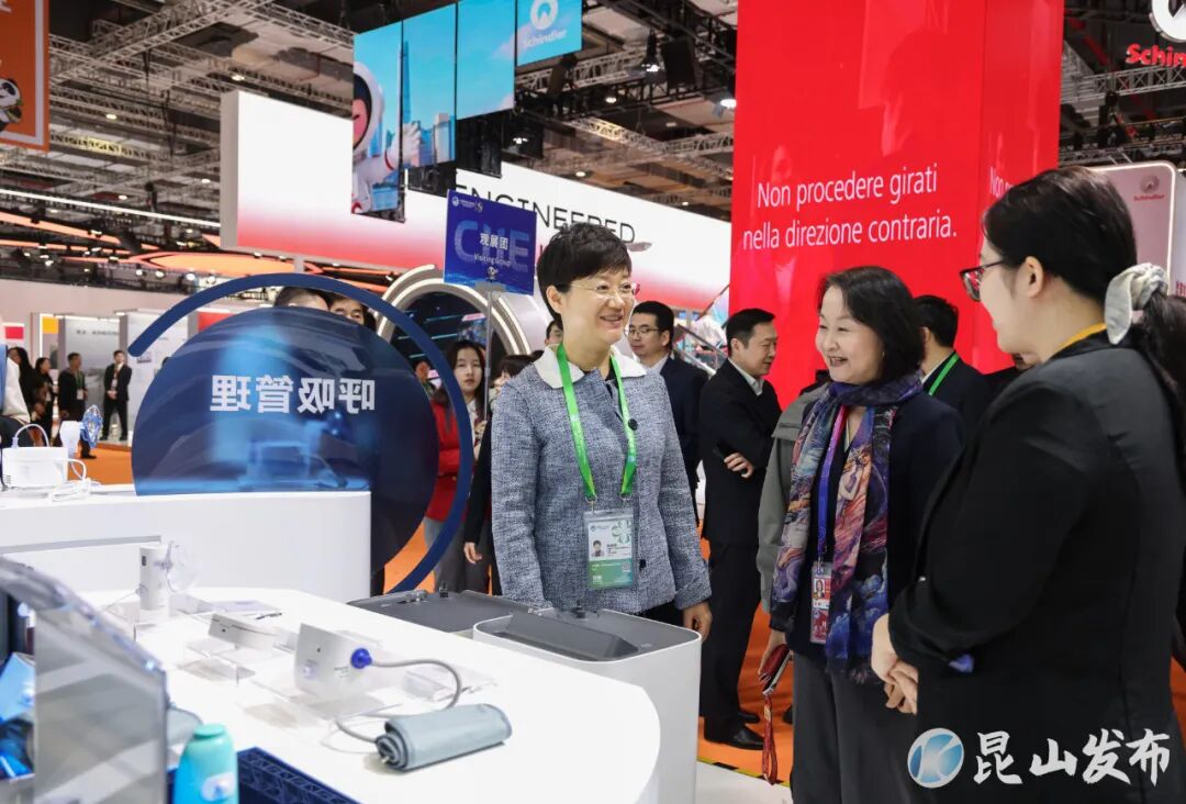 进博会技术装备展区集中展示高端装备和前沿技术。陈丽艳首先参观了欧姆龙展台,了解企业在工业自动化、器件与模块解决方案及健康医疗等领域的新技术、新产品。她说,当前昆山正积极拥抱产业变革浪潮,精准谋划“核心产业+”“人工智能+”“绿色低碳+”三篇文章,精心培育“2+3+3”新兴产业体系。欧姆龙集团是全球知名的自动化控制及电子设备制造厂商,希望企业深度链接昆山产业发展,在智能制造、绿色低碳、医疗健康等各领域开展深层次、更广泛的务实合作。