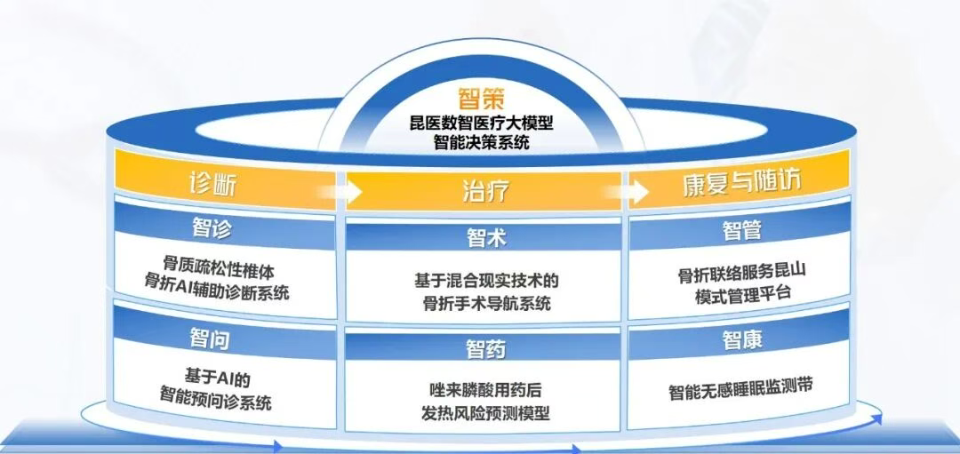 在医疗健康赛道,昆山市第一人民医院联合上海脊影慧智能科技有限公司、广州国家实验室、昆山市中医医院申报“‘昆医数智医疗大模型’赋能老年人群骨健康管理”项目。该项目通过强化医疗大数据与人工智能的深度融合,精准破解老年骨骼疾病“诊疗不足、管理脱节、负担沉重”等核心难题,构建起覆盖全生命周期的智慧健康管理新模式。