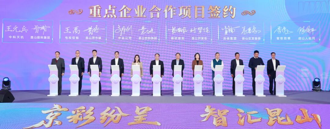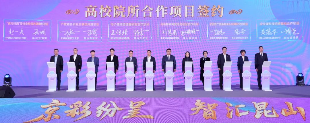 当天,昆山人才科创(北京)创新中心、昆山OPC(北京)孵化基地揭牌成立。聘任了首批“科技人文讲堂”授课导师。昆山与工业和信息化部中小企业发展促进中心签署战略合作协议,一批重点企业合作项目、高校院所合作项目、金融资本合作项目同步签约。