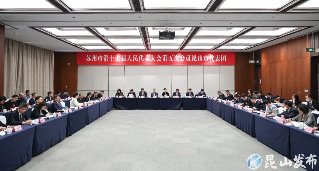 1月23日上午,苏州市第十七届人民代表大会第五次会议昆山市代表团集中审议政府工作报告,审查“十五五”规划纲要草案。苏州市委常委、组织部部长祁松,苏州市人大常委会一级巡视员周旭东;昆山市委书记陈丽艳,市委副书记、市长范建青,市人大常委会主任沈一平等苏州市人大代表参加审议。