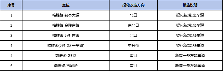 为提升周边路网的交通疏解能力,在项目实施之前,公安交管部门和建设单位对该施工路段周边六个主要路口进行了渠化拓宽改造:
